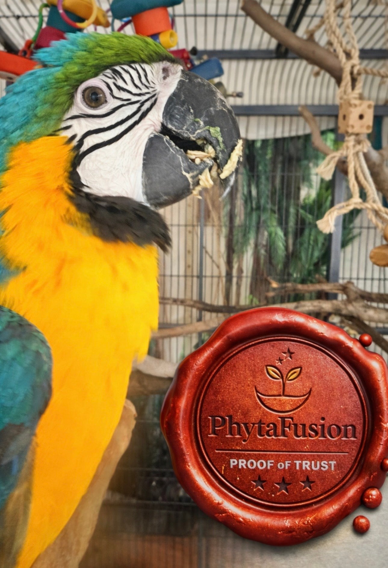 Celestial Chop™ is the foundation of the PhytaFusion system — a seasonal blend of whole foods, gentle botanicals, and intentional preparation designed to support daily nourishment for companion birds.